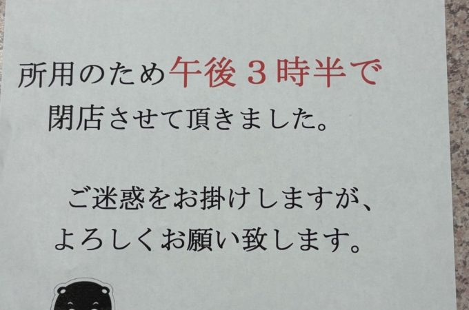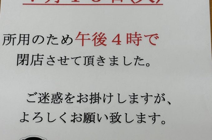 2025年10月30日(木)午後3時半までの営業とさせていただきます。
