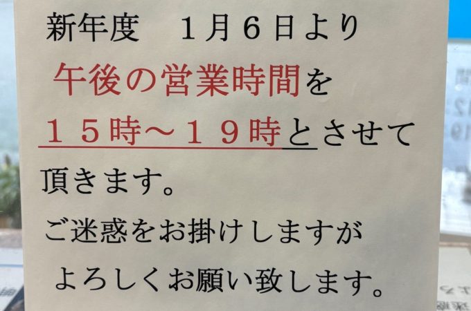 来年1月6日より、午後の営業時間が変わります。