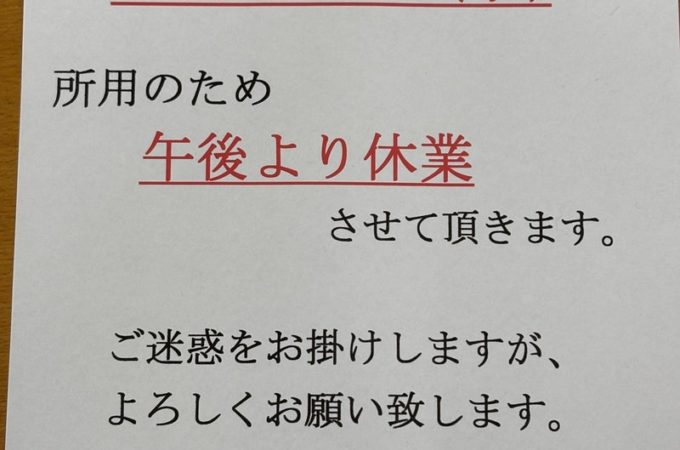 2025年1月22日(水)、午後より休業とさせていただきます。